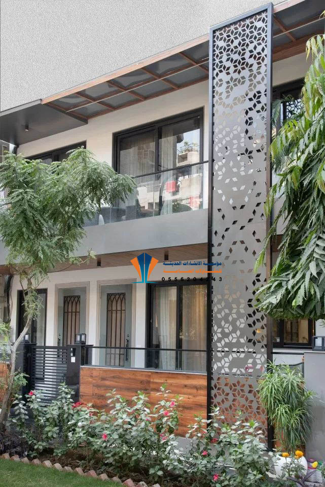 - أسوار الفلل والقصور: دمج ألواح الليزر مع الرخام أو الحجر لإعطاء سور المنزل طابعاً مودرن.